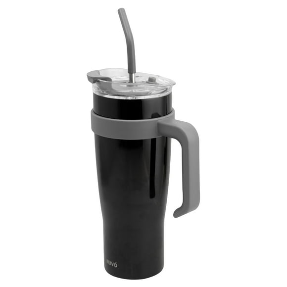 Termo de Plástico con Tapa Doble y Popote, Vaso Alto Reutilizable con Asa Ergonómica, Capacidad 1.2 Litros, Color GrisTermo de acero Inoxidable doble pared Ambient 21 gris metálico 900 ml