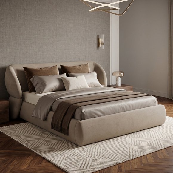 Cama Sahara King Size, Atlas del Descanso color BeigeRecámara matrimonial Mariana, Atlas del Descanso color Nogal