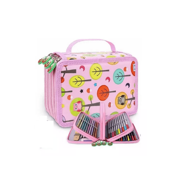 Marcadores De Doble Punta 132 ColoresOrganizador De 72 Agujeros Para Bolígrafos, Color Rosa con Dibujos