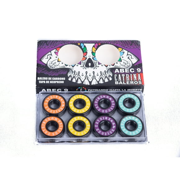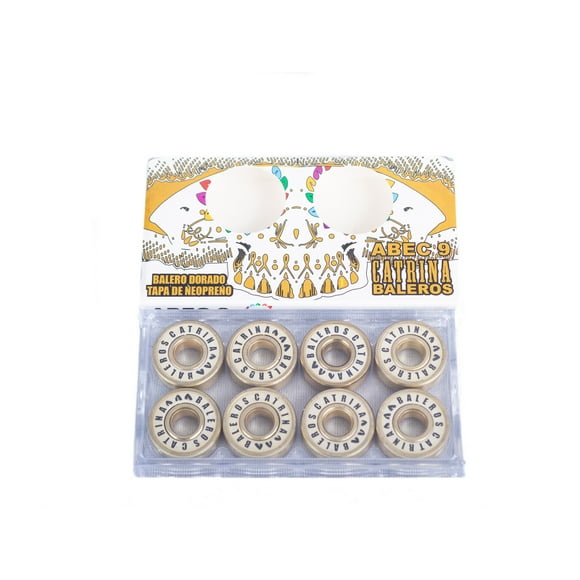 Set de 8 baleros de Teflón colores Catrina Skate Co. abec 9Set de 8 baleros Catrina Skate Co. Teflón Gold ABEC 9 para patineta y patines