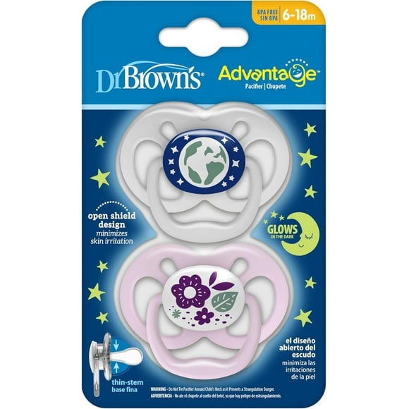 Chupón Ortodóntico Prevent Etapa 1 Niño 2-pack Dr. Brown’sChupón Dr Brown's Advantage Nocturno 6-18 Meses Azul y Verde Niño Brilla En La Obscuridad