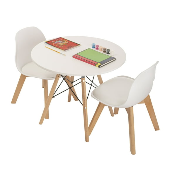 Mesa Circular Berlin - 2 Sillas Frankfurt (Blanco)Mesa de melamina Duduk cuadrada y 2 sillas Eames Infantil rosa