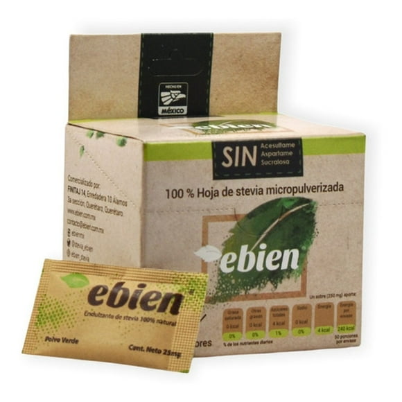 Endulzante Natural En Polvo A Base De Stevia 60 Sobres EbienHoja Micropulverizada De Stevia 50 Sobres Ebien Ebien Original