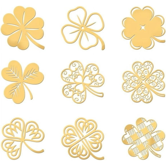 9 pegatinas con temática de trébol de 1,6 x 1,6 pulgadas, pegatinas del día de San Patricio, pegatinas autoadhesivas de metal dorado, pegatinas de metal de trébol de cuatro hojas para álbumes deAvailable for Envío internacionalEnvío internacional