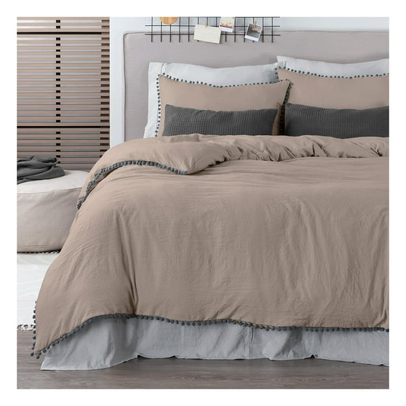 Funda de Edredón Duvet con Pompones y Funda de Almohada Esquimal (Café - Gris, Individual)Edredón Ligero Pinsonic Doble Vista + Set de Sábanas y Fundas Esquimal (Nectar, King Size)