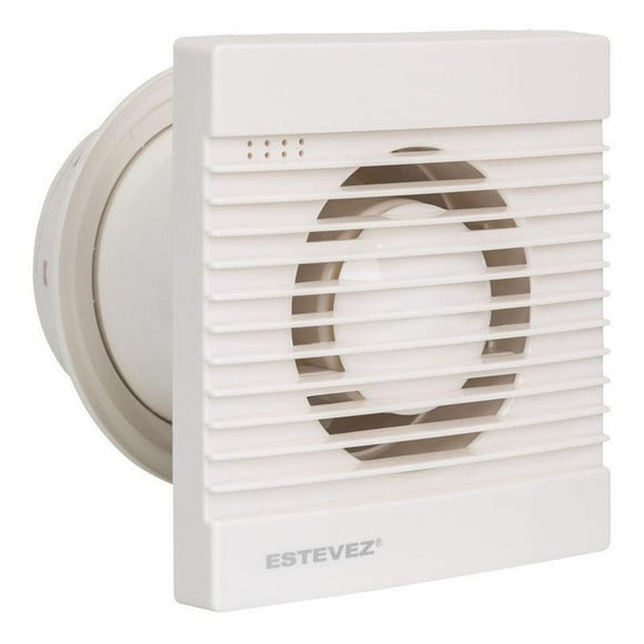Estevez Extractor de Aire de 5 Pulgadas con Reja Atirretorno, Instalación en Pared / VentanaEstevez Extractor de Aire con Temporizador de 4 Pulgadas Para Baño, Cocina, Pared, Modelo 1204-BL-T(eco)
