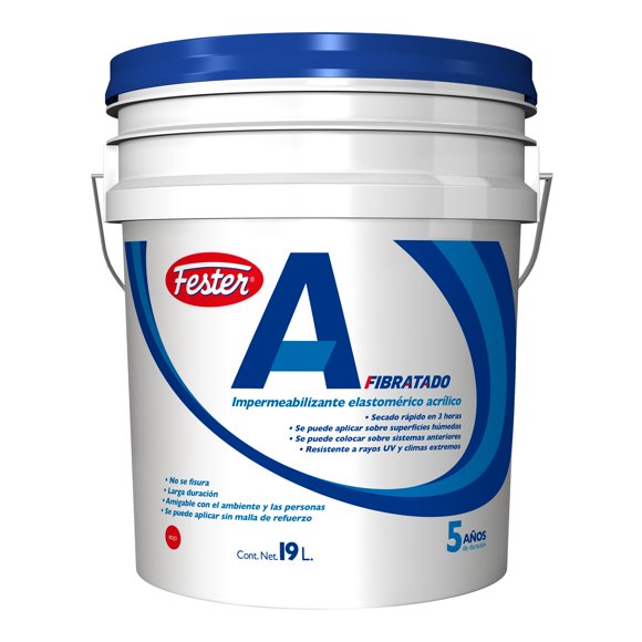 Impermeabilizante Acrílico Base Agua Renovable de Secado Extra Rápido Fester Acriton ProShield 6 Años 19 L Blanco Fester Acriton ProShield 6 Años 19 L BlancoImpermeabilizante Elastomérico Acrílico Fester A5 Fibratado 5 Años 19 L Rojo
