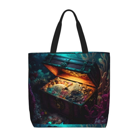Fotbe Underwater Treasure Chest Bolsa Tote con Estampado para Mujer, Bolsos con Cremallera, Bolsa de Hombro Casual de Gran Capacidad con Bolsillos InternosAvailable for Envío internacionalEnvío internacional