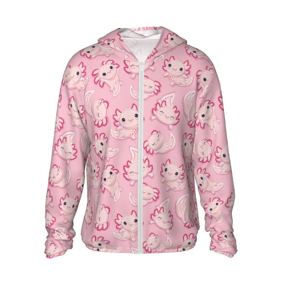Fotbe happy baby axolotls Chaqueta con Protección Solar UPF 50+ para Hombre y Mujer, Camisa con Capucha y Bolsillos-Small