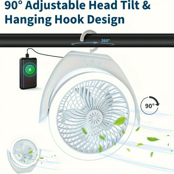 Outdoor Caming Fan Rechargeable Desk Fan For Bedroom, Battery Operated Outdoor Portable Camping Fan With Light, 3 Speed Adjustment Desk Fans Small Quiet For Office HomeAvailable for Envío internacionalEnvío internacional