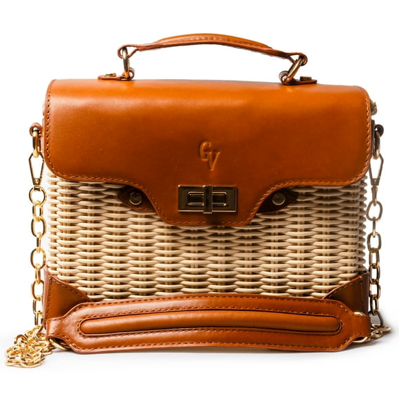Bolso de piel Guadalupe Vázquez negro con logo color oroBolso de mimbre y piel marrón Guadalupe Vázquez Grecia