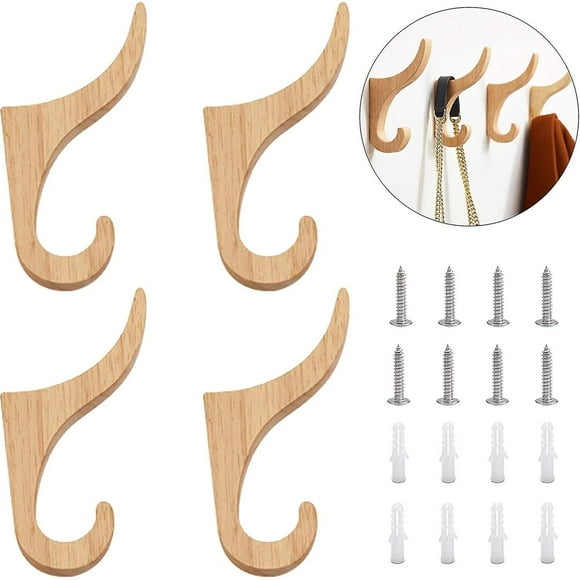 4 Pack Natural Wood Hooks Durable Wall Mount Coat Hat Towel Hooks For Living Room Bathroom (hyperbolic Hook) DMJ.NAvailable for Envío internacionalEnvío internacional