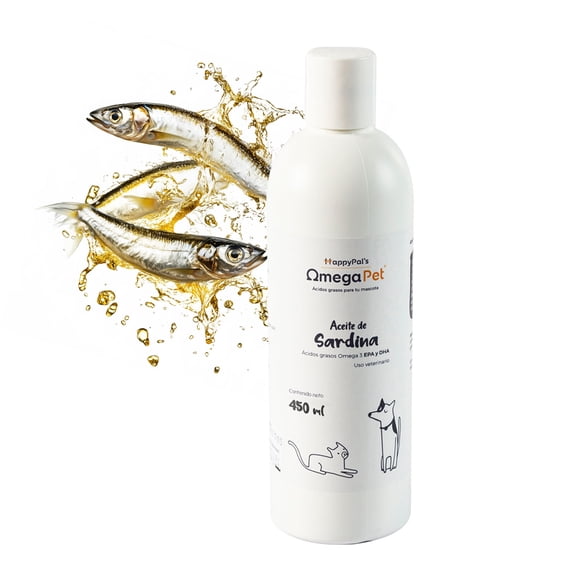 Omegapet 450 ml. Aceite de Pescado con Omega 3 para Perros y Gatos. Contiene Sardina. Protege Piel y Pelo de tu Mascota. Reduce Caída de Pelo I Happy PalAceite de Pescado con Omega 3 para Perros y Gatos. Contiene Sardina. Protege Piel y Pelo de tu Mascota. Reduce Caída de Pelo. 360 ml I Happy Pal