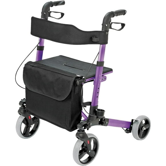 Andador con ruedas HealthSmart Walker con asiento y respaldo, altura de manija ajustable, compatible con FSA HSA, bolsa de almacenamiento extraíble y un marco liviano y duradero que se pliega y soport