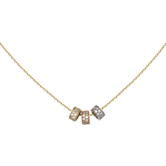 Collar Gargantilla 3 aros 3colores con circonias 45cm Oro 10K Horoz V12 W849