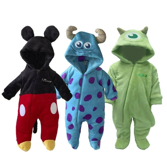 Pack 3 Mamelucos Con Gorro Bordado Disney Mickey, Sulley, Mike Talla 18 meses Kiss Pijamas para Niños