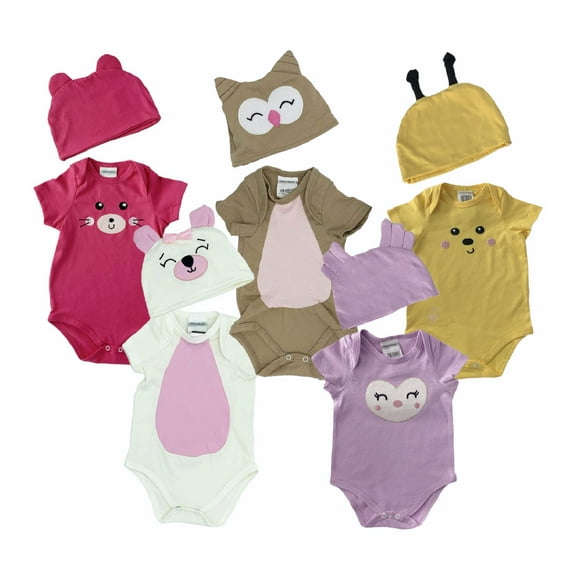 Pack 3 Mamelucos Con Gorro Bordado Disney Mickey, Sulley, Mike Talla 18 meses Kiss Pijamas para NiñosKit 5 Pañaleros Animalito Kiss Osita, Ratona, Buas, Abeja Talla 3 Meses Kiss Ropa de Recién Nacido