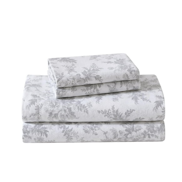 Laura Ashley Home - Juego De Sábanas Completas De Franela De Algodón Cepillado Para Mayor Suavidad Y Comodidad (Chelsie Vine Grey Full) Chelsie Vine Grey/White