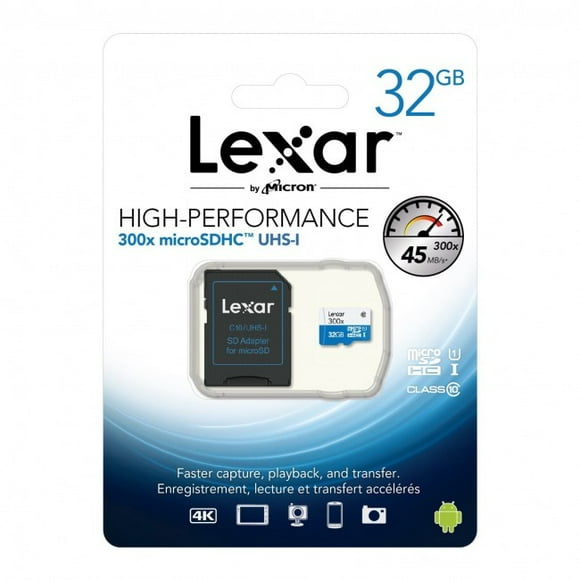 Tarjeta Micro SD LEXAR 32 GBTarjeta De Memoria Lexar 32GB Microsdhc 300x High Performance UHS-I Con Adaptador SD Clase 10 45MB/S Lexar SDHC
