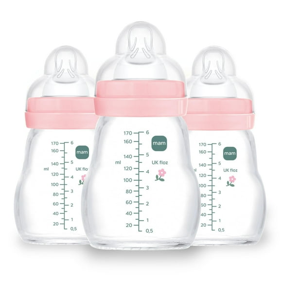 Biberón de Vidrio MAM para Bebé 180ml Flujo Lento Sin BPA Pack de 3
