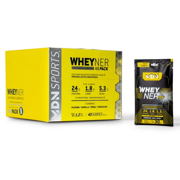 Mdn, Wheyner 40pack, 40sobres De 30g C/u, 4 Sabores Proteína MDN Sports Proteina WheyNer 40 PackMdn Wheyner 1.95kg 65 Servicios, Chocolate, Proteína 100% Whey Pura MDN Sports Proteina Suero de Leche WheyNer Chocolate