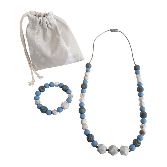 MOLA Collar y Pulsera mordedera sensorial Azul Baby Cuentas de silicón Grado alimenticio Mola BM/collar y pulsera/silicón/Azul