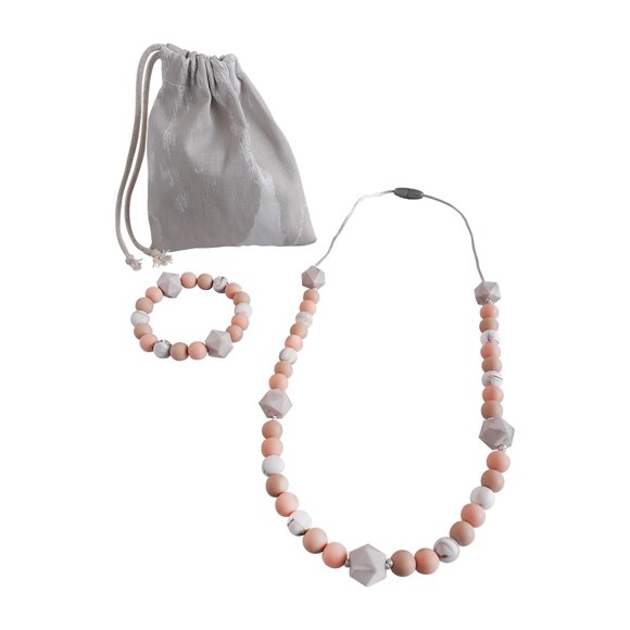MOLA Collar y Pulsera mordedera sensorial Nude Cuentas de silicón Grado alimenticio Mola BM/collar y pulsera/silicón/Nude