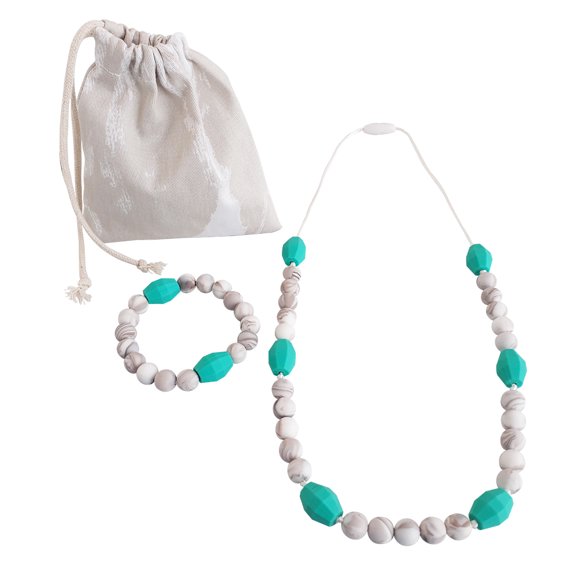 Collar y Pulsera mordedera sensorial Mola, Blanco, Cuentas de silicón Grado alimenticioMOLA Collar y Pulsera mordedera sensorial Azul-verde Cuentas de silicón Grado alimenticio MOLA BM/collar y pulsera/silicón/Azul-verde