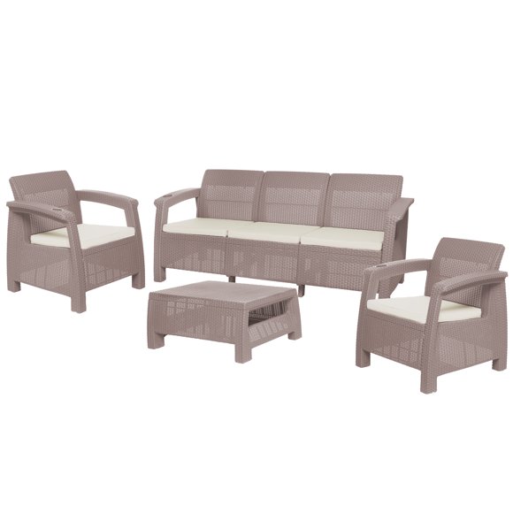 Sala Para Jardín Tipo Ratán 4 Puestos Taupe MQ 425-TA