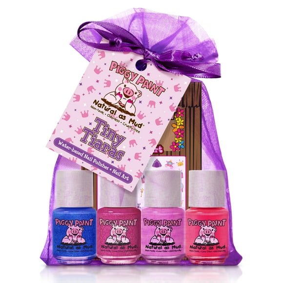 Set de esmaltes de uñas Piggy Paint Tiny Tiaras, 7 ml x 4 para niñas