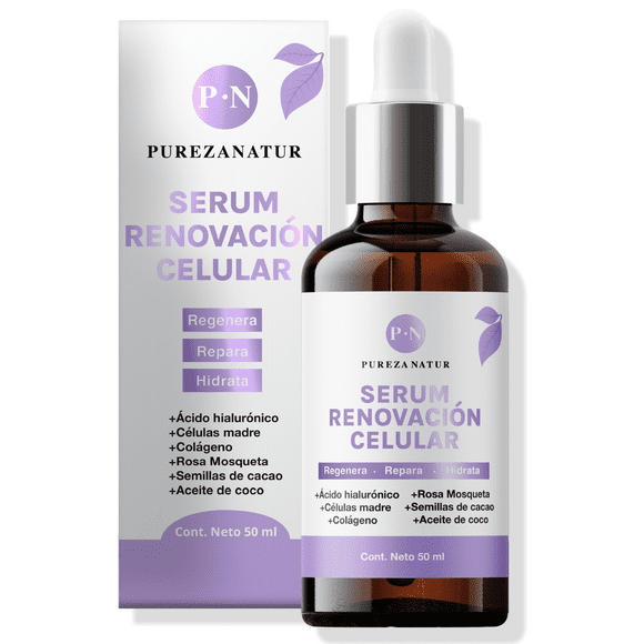 Suero Facial aclarante intensivo Pureza Natur Ácido Hialuronico facial Vitamina C 50 mlSerum Facial Ácido Hialuronico Células Madre Rosa Mosqueta Colágeno Semillas de Cacao 50ml Pureza Natur