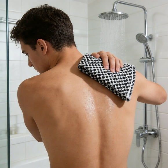 Double-Sided Exfoliating Scrub Towel Long Back Strap for Shower Bath Spa Skin Care 1-Pack