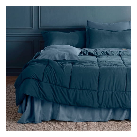 Set Edredón King Size + Funda De Almohada + Sábanas 7 Pzas Real Textil Azul - GrisSet Edredón Individual + Funda De Almohada + Sábanas 5 Pzas Real Textil Azul Marino - Azul