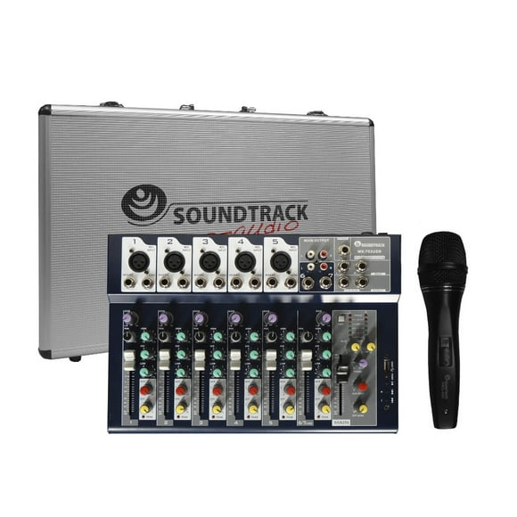 Mezcladora 6 Canales Reproductor Usb soundtrack USA SOUNDTRACK CHMX-802USBKit de Estudio SOUNDTRACK STUDIO4KIT Mezcladora 4 Canales Pasiva Maletín de Aluminio