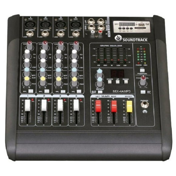 Mezcladora Amplificada SOUNDTRACK 4 canales ST-402USBMezcladora Amplificada SOUNDTRACK MIX-6PC 6 Canales 150W x2 Phantom + 48V