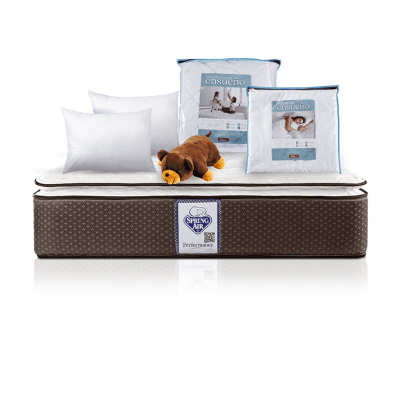 Colchón Spring Air Queen Size Super Value + 2 Almohadas Sc + Protector EnsueñoColchón + Box Spring Air Queen Size Super Value + 2 Almohadas SC + Protector + Osito Spring Air