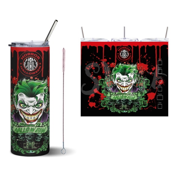 Termo Tumbler SVART 20 oz diseño Joker Colección Pesadillas de Halloween