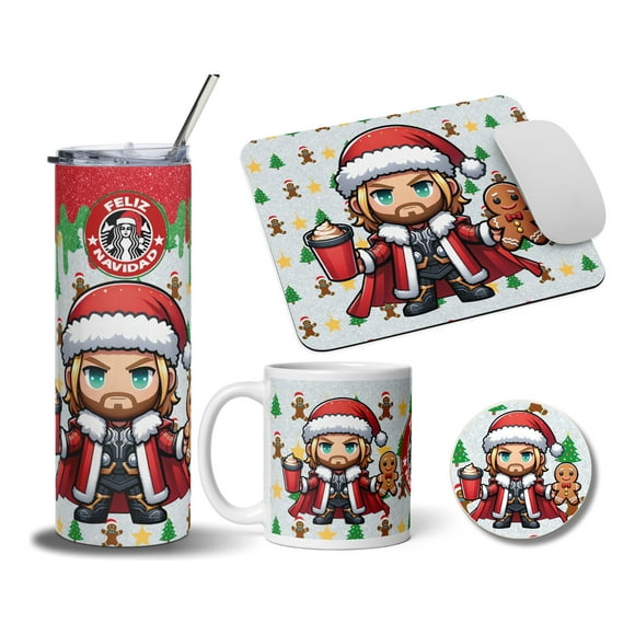 Termo 20oz SVART con taza posavaso y Mouse Pad diseño Thor Chibi Feliz navidadTermo Tumbler SVART 20 oz diseño Girls of Horror Movies Pesadillas d Halloween MD3