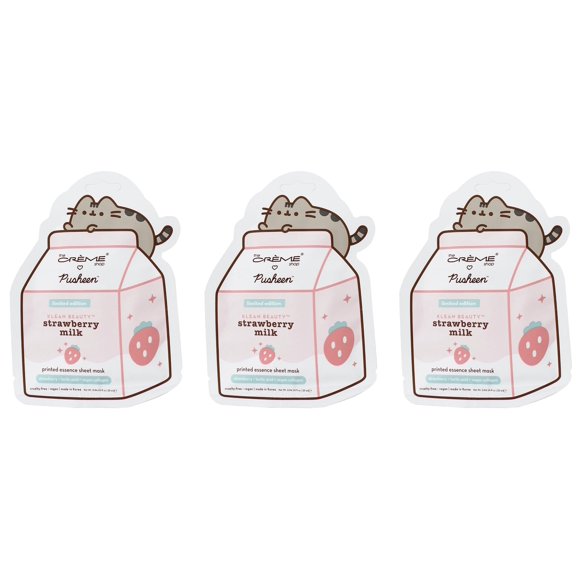 The Crème Shop X PUSHEEN KLEAN BEAUTY Strawberry Milk Printed Essence Sheet Mask | Vitamin C & Vegan Collagen | Brightening & Youthful Skin | Vegan, Cruelty-Free (Set of 3)