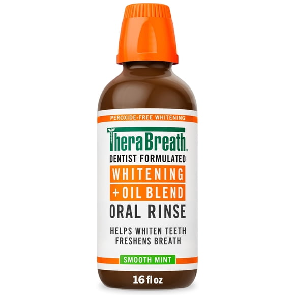 Enjuague bucal TheraBreath Whitening + Oil Blend 480 ml sin alcoholEnjuague Bucal TheraBreath Kids Anticaries con Flúor 473 ml Paquete de 2