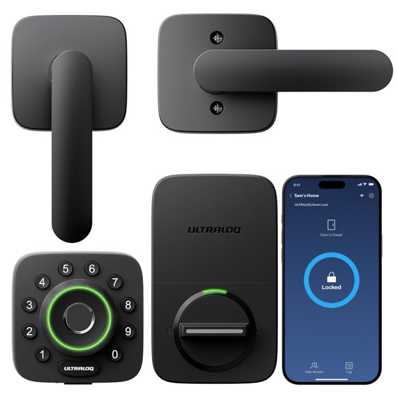 Cerradura inteligente ULTRALOQ Bolt F, funciona con Apple HomeULTRALOQ U-Bolt Pro WiFi Cerraduras inteligentes para puerta delantera, Cerradura inteligente con juego de manijas, Cerradura de puerta de entrada sin llave con sensor de puerta, Juego de cerradura de