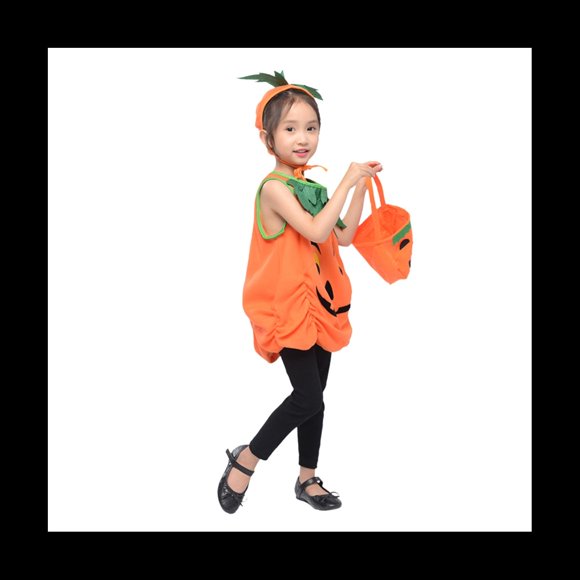 2023 Disfraz de Halloween para NiñAs, Disfraz de Calabaza, Conjunto de Ropa para NiñOs con Diadema, Bolsa de Calabaza