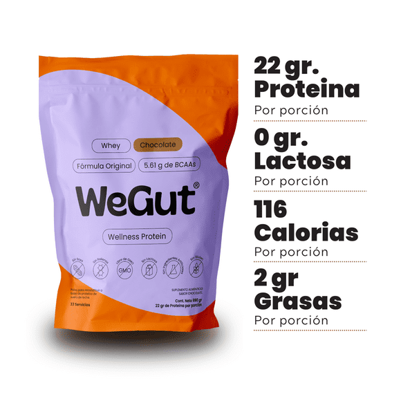 WeGut Whey 990g, Proteína en Polvo, 22.2g de Proteína Whey Por Porción, 33 Porciones, Sabor ChocolateWeGut Iso Zero 990g Proteína en Polvo Sabor Chocolate