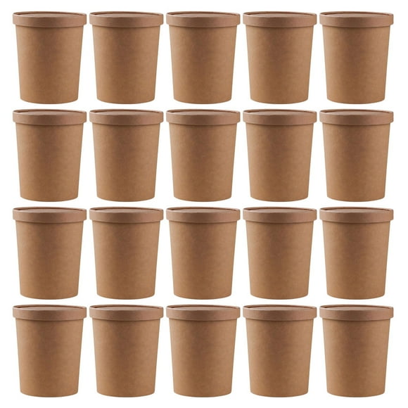 25 sets Copas de sopa de sopa de papel de kraft desechables Cucharas de gachas de avena con tapa para almacenamientoAvailable for Envío internacionalEnvío internacional