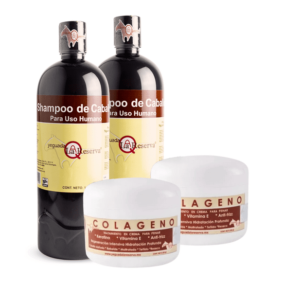 Shampoo de Caballo Negro 1L + Colágeno Chico 60gr - Yeguada la Reserva 2 Pack Yeguada la Reserva Ideal para Todo Tipo de Cabello/Estimula el Crecimiento, Fortalecimiento y BrilloShampoo Antipiojos y Liendres Yeguada la Reserva 1 Litro Ideal para Todo Tipo de Cabello