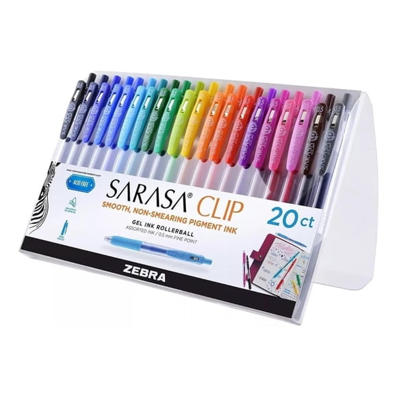 Bolígrafos Zebra Sarasa Clip Retráctil Tinta gel Secado rápido Punto Fino (0,5 mm) Estuche 20 piezasBolígrafo Pluma Fuente Elegante De Tinta Gel Sarasa Grand Zebra.