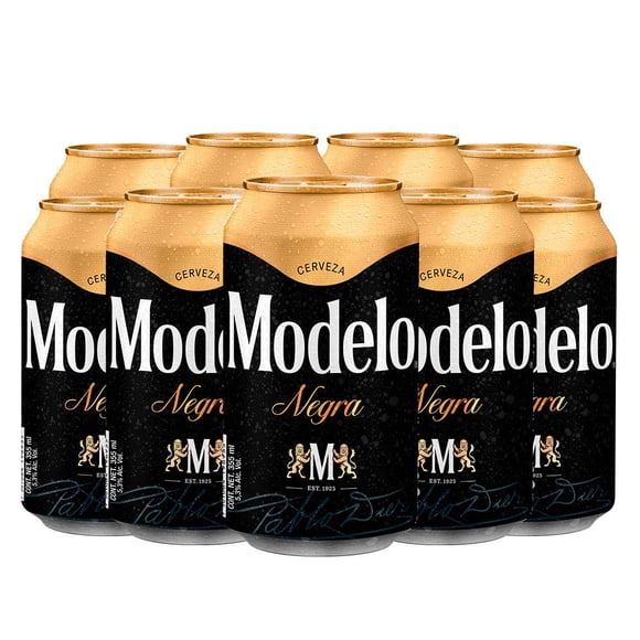 Cerveza Oscura Modelo Negra tipo Munich, 2 packs con 12 Latas de 355ml c/u, color ámbar oscuro con notas a malta tipo Munich tostada y carameloAvailable for Envío internacionalEnvío internacional
