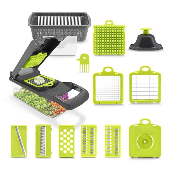Xihbxyly Picadora de Verduras 14 En 1, Cuchillas Reemplazables de Acero Inoxidable, Protector de Mano, Fácil Agarre, Corte Versátil, Triturado, Rebanado, Herramienta de Cocina Multifunción, Uso FamilAvailable for Envío internacionalEnvío internacional