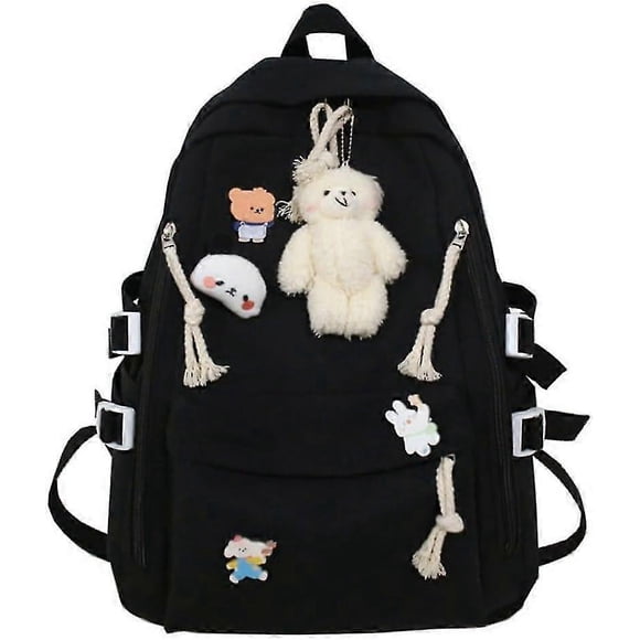 Aesthetic backpack, preppy backpack, kawaii backpack, cute backpack with accessories (black)Available for Envío internacionalEnvío internacional