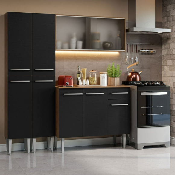 Cocina Integral Madesa Emilly Fit 229cm Marrón/Negro GREM229003Gabinete de Cocina Integral Madi, Mueble Inferior Encimera y Tarja, Diseño Moderno y Funcional, Almacenamiento Amplio.